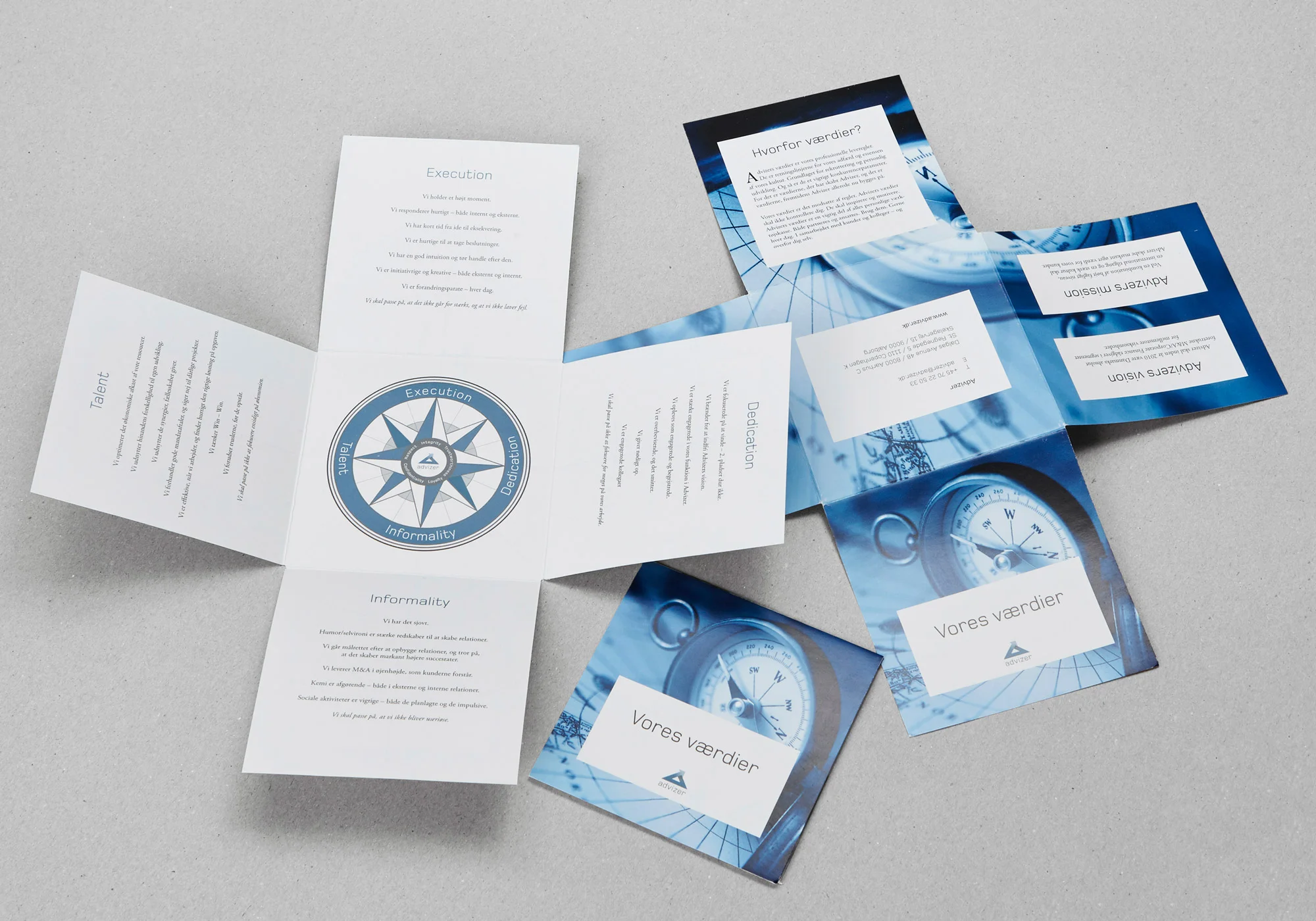 Vi udviklede, designede og skrev en lille værdi-folder, der på en uhøjtidelige og professionel facon forankrer ledelsens langvarige værdi- og strategiarbejde til medarbejderne.