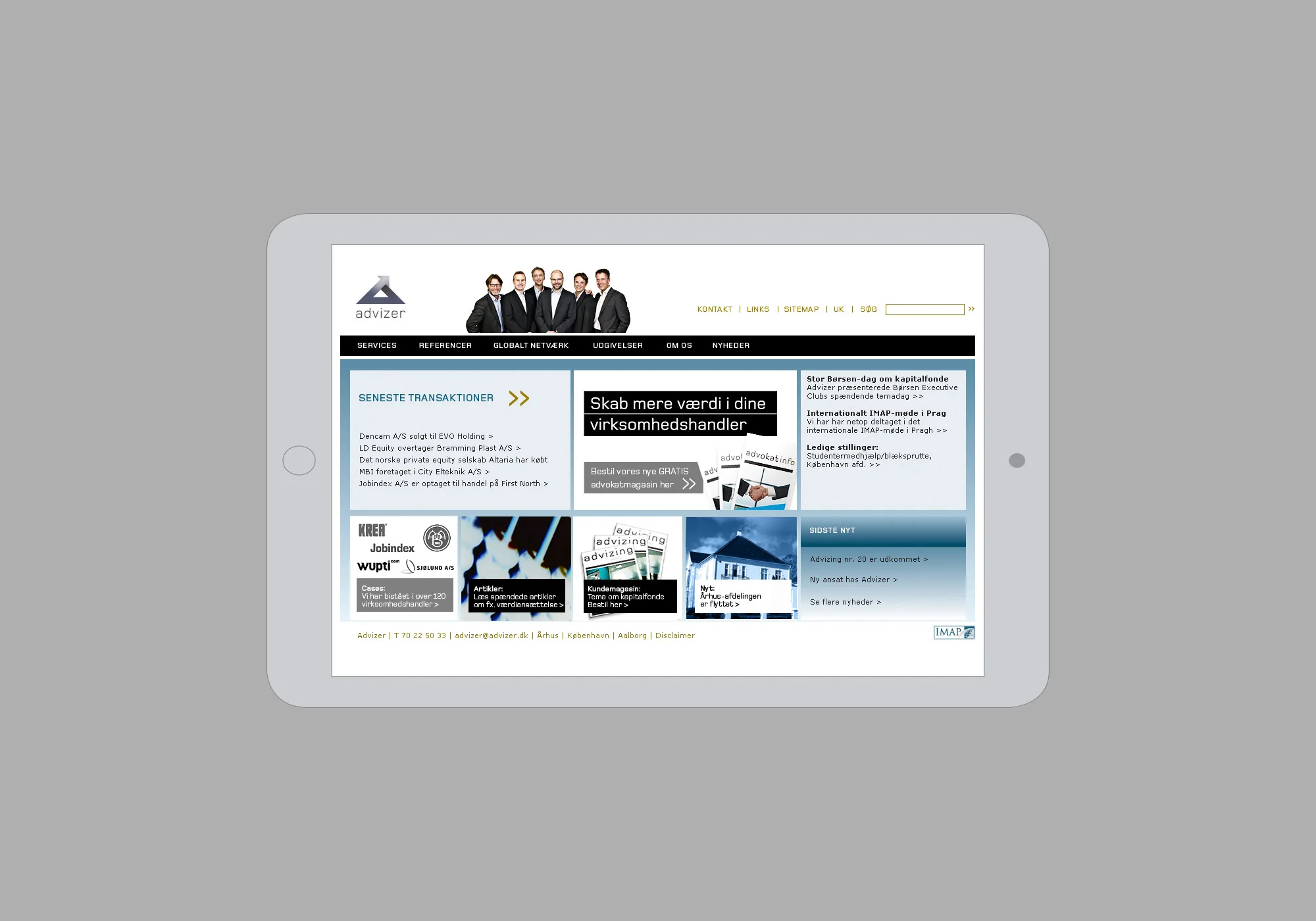 Advizer (Nu. Clearwater) er landets førende formidler af virksomhedstransaktioner i mellemsegmentet. Vi har samlet, løftet og synkroniseret al virksomhedens kommunikation, PR og visuelle udtryk.
