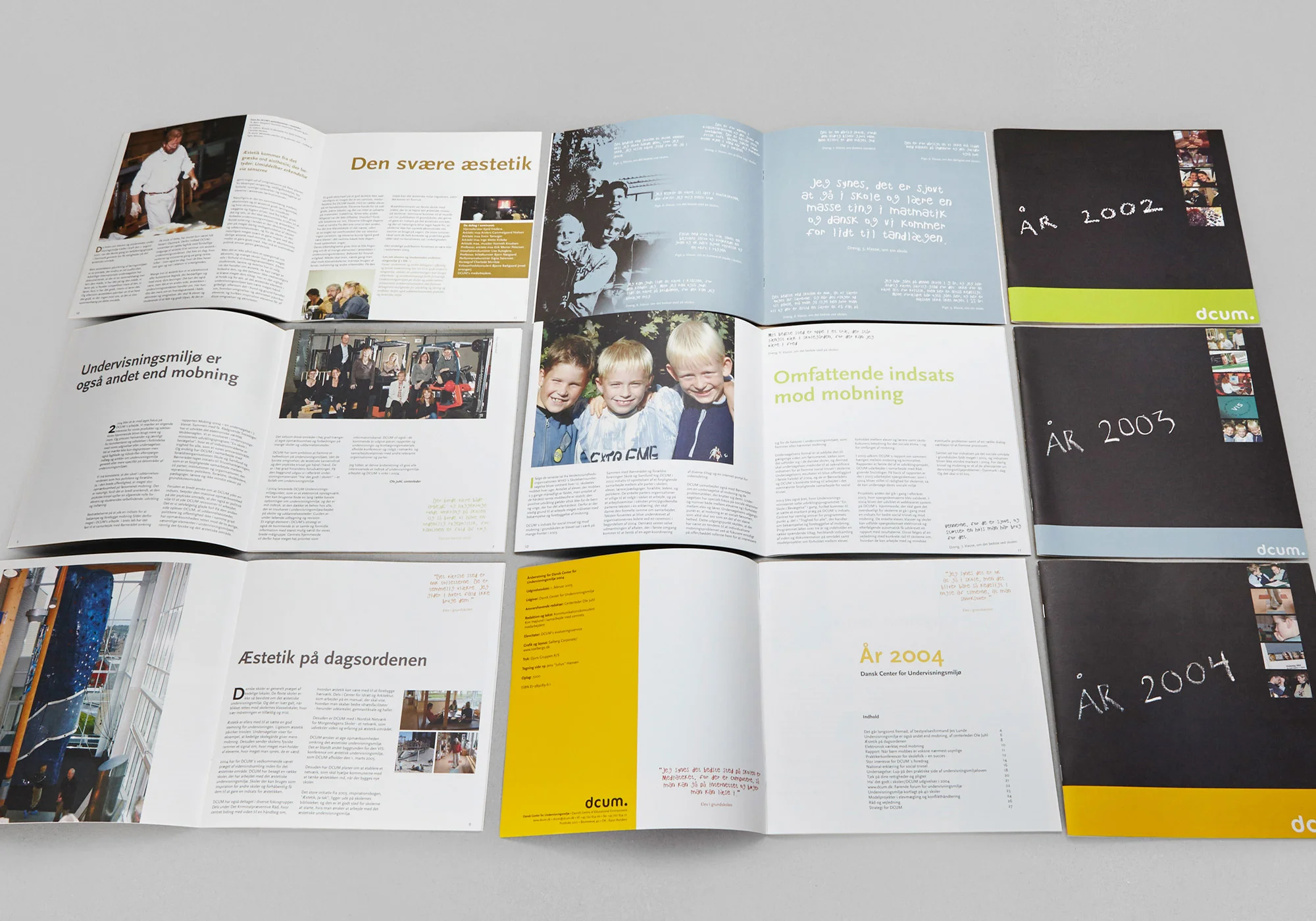 Vi designede og producerede bl.a. også tre årgange af DCUM's årsskrift. Identiteten er udviklet i samarbejde med grafisk designer Helle Jensen, der bl.a. også har designet bogen 'Æstetik Ja Tak'.