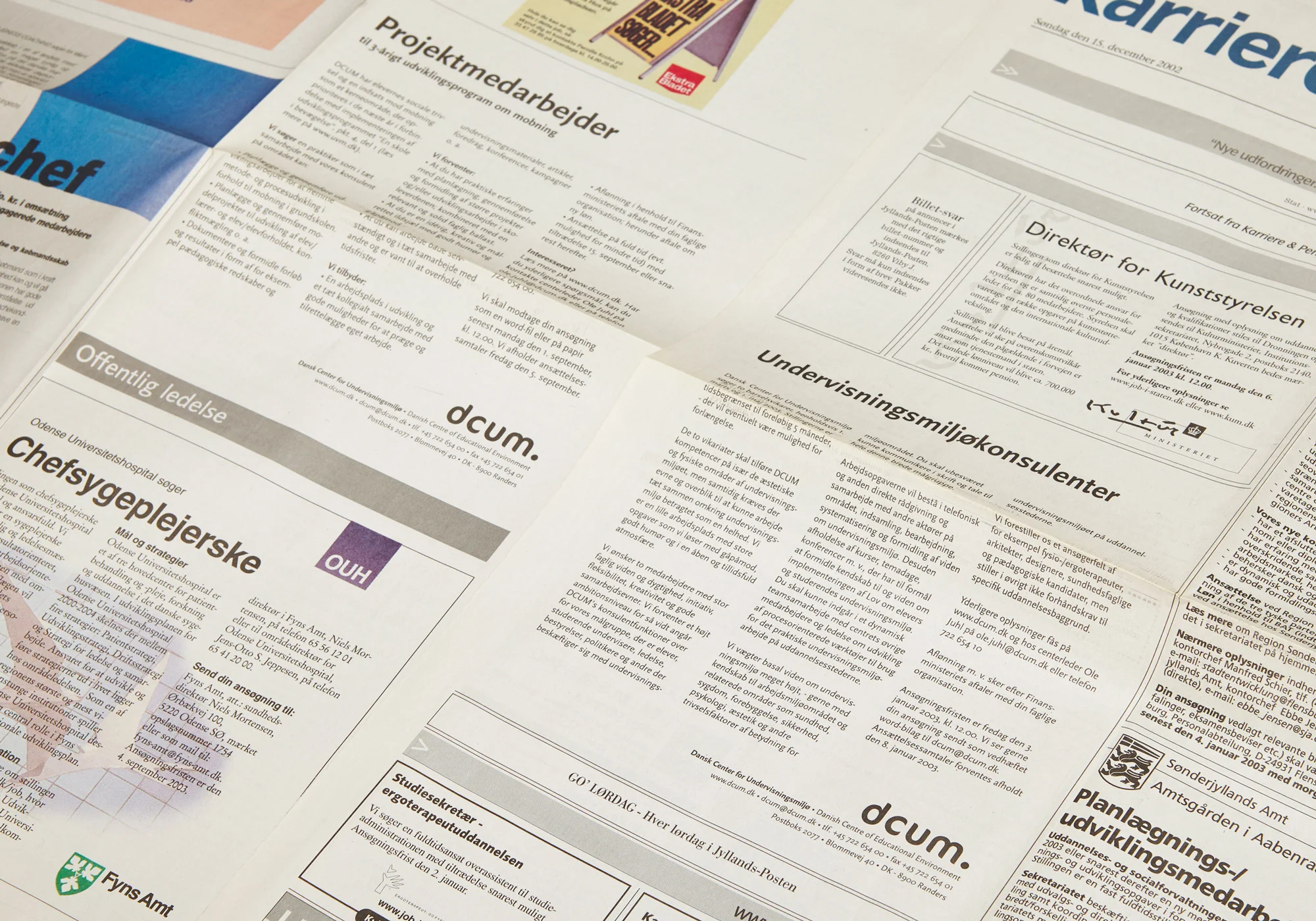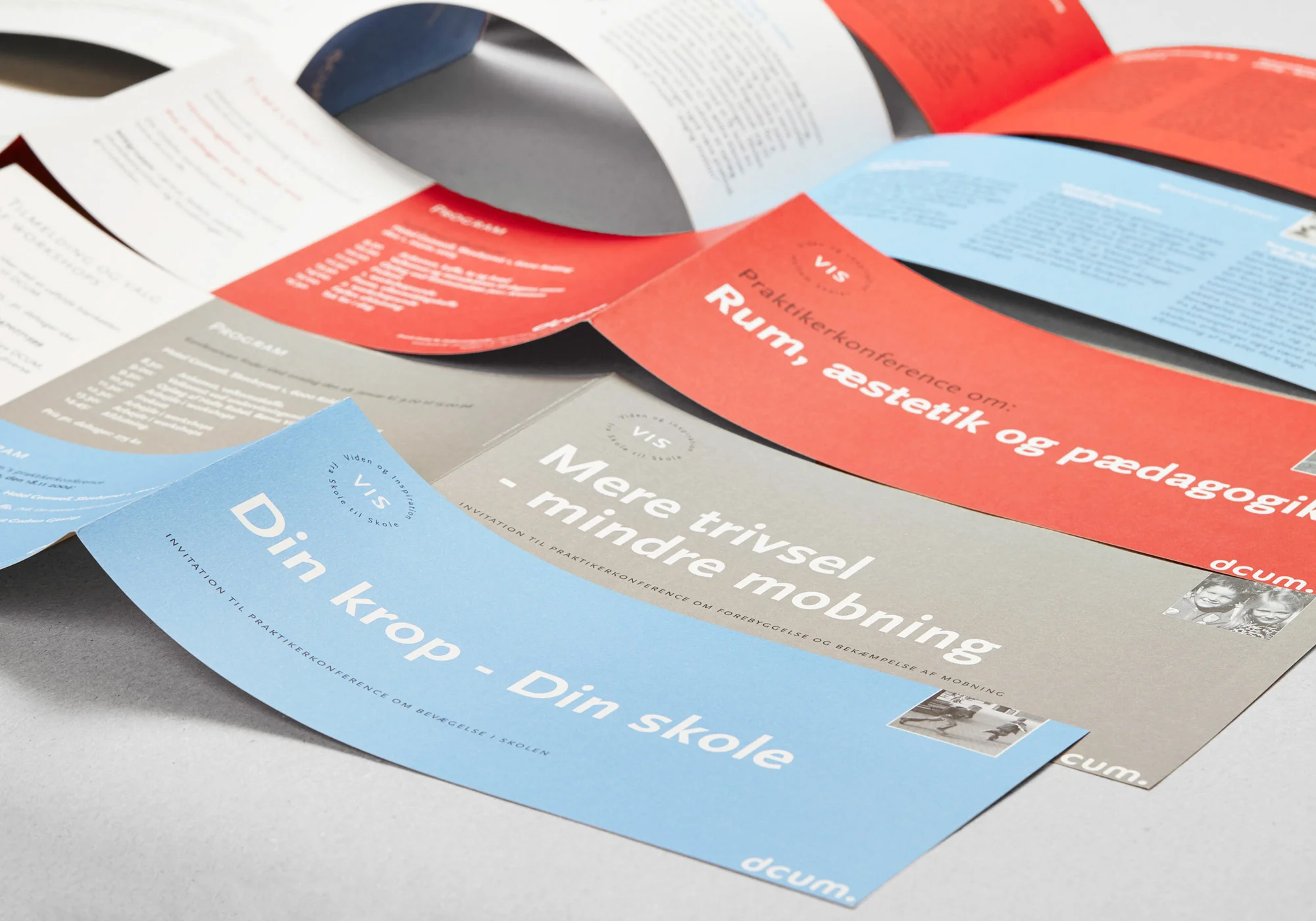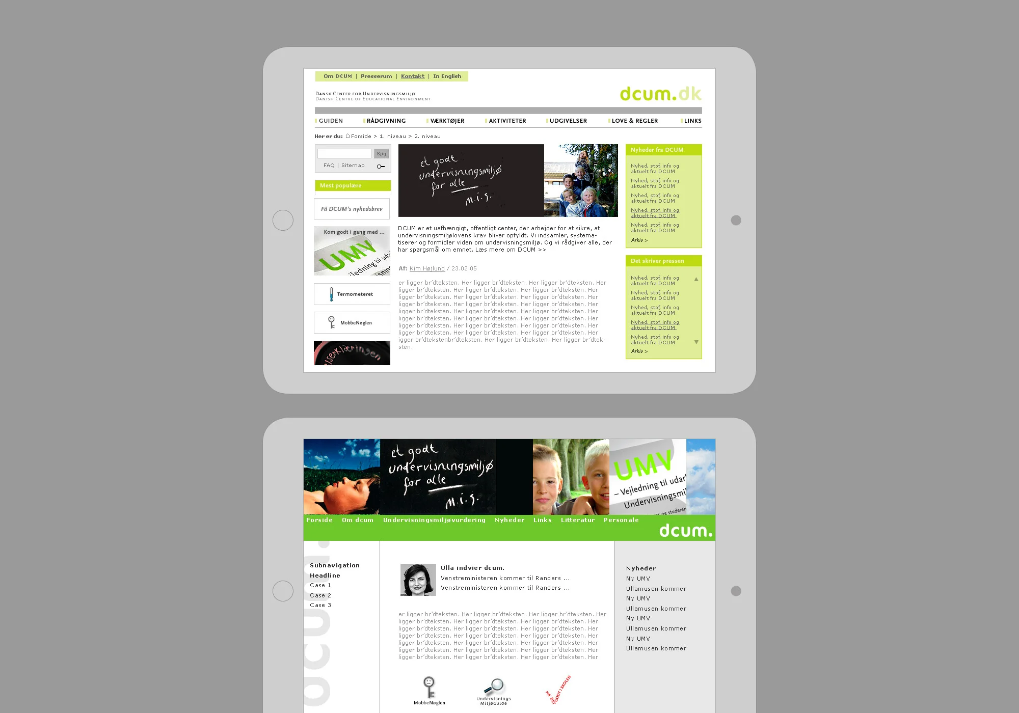 Identiten blev rullet ud over de fleste fysiske og digitale medier, spørgeskemaer, evalueringer, skiltning mv. Vi har fx designet tre generationer af dcum.dk - landets online vidensbank for undervisningsmiljø.